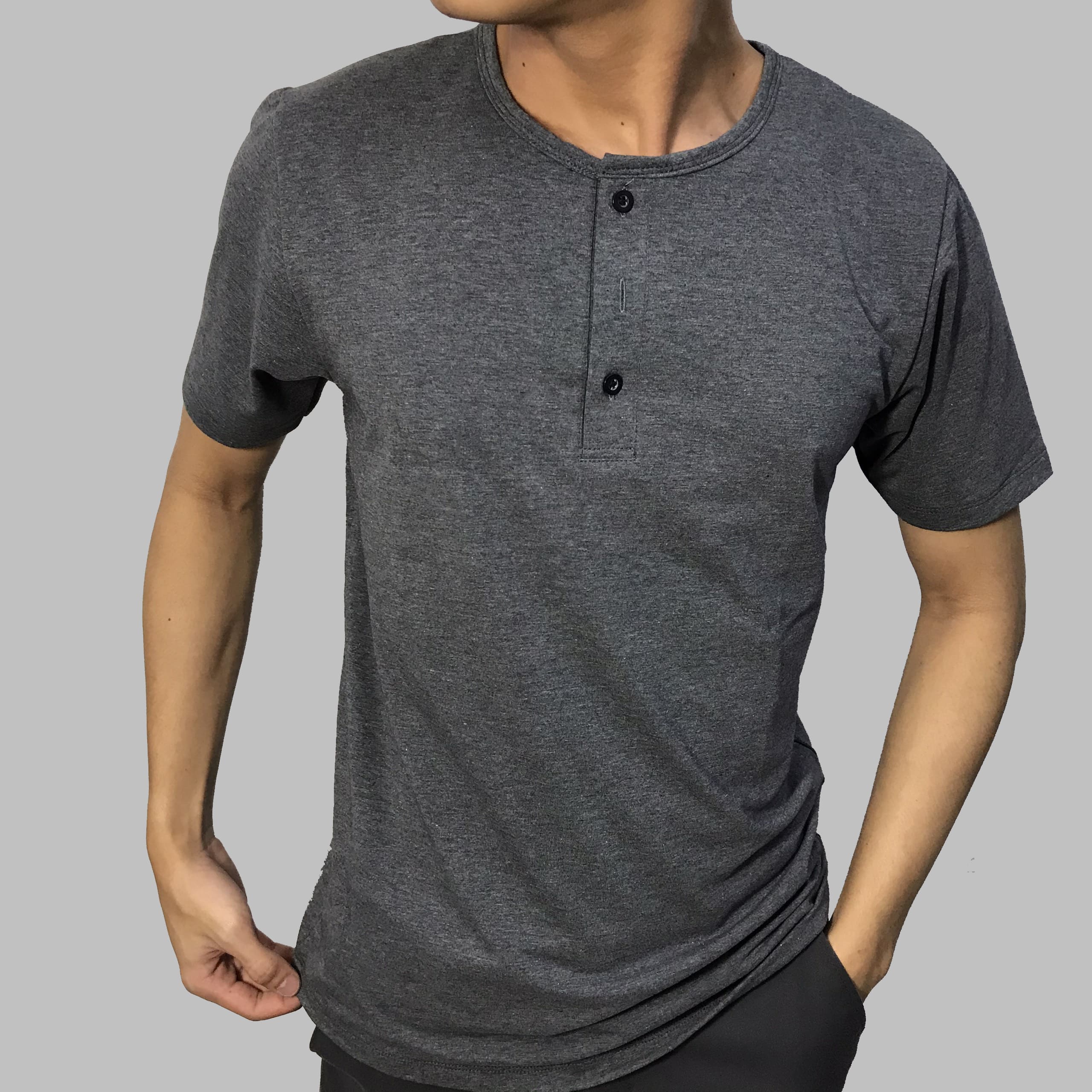 Thiết kế cổ trụ 3 nút (Henley) tạo điểm nhấn