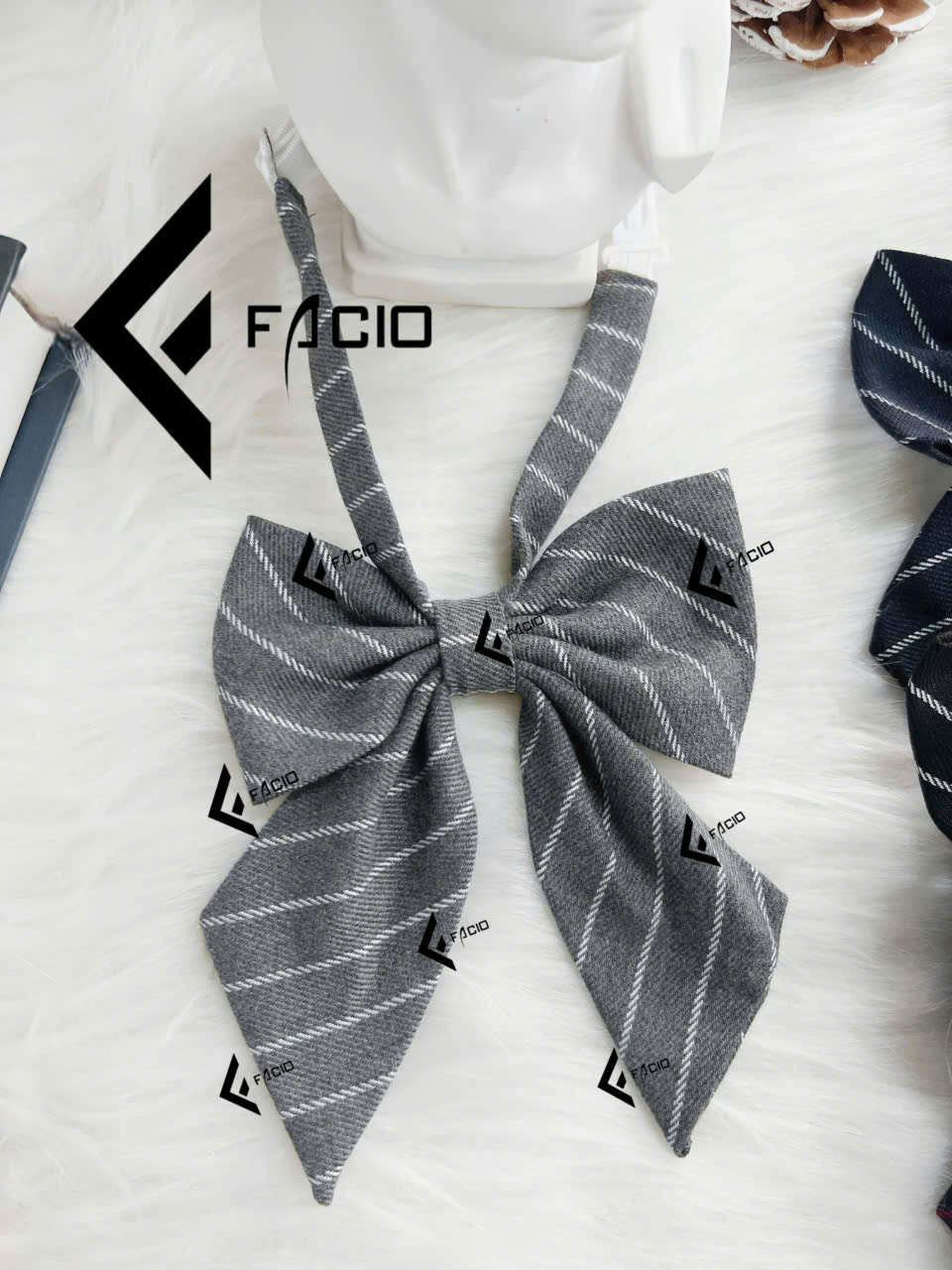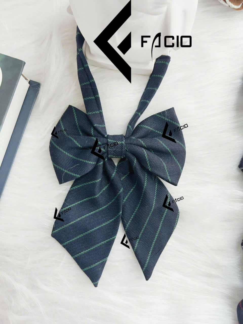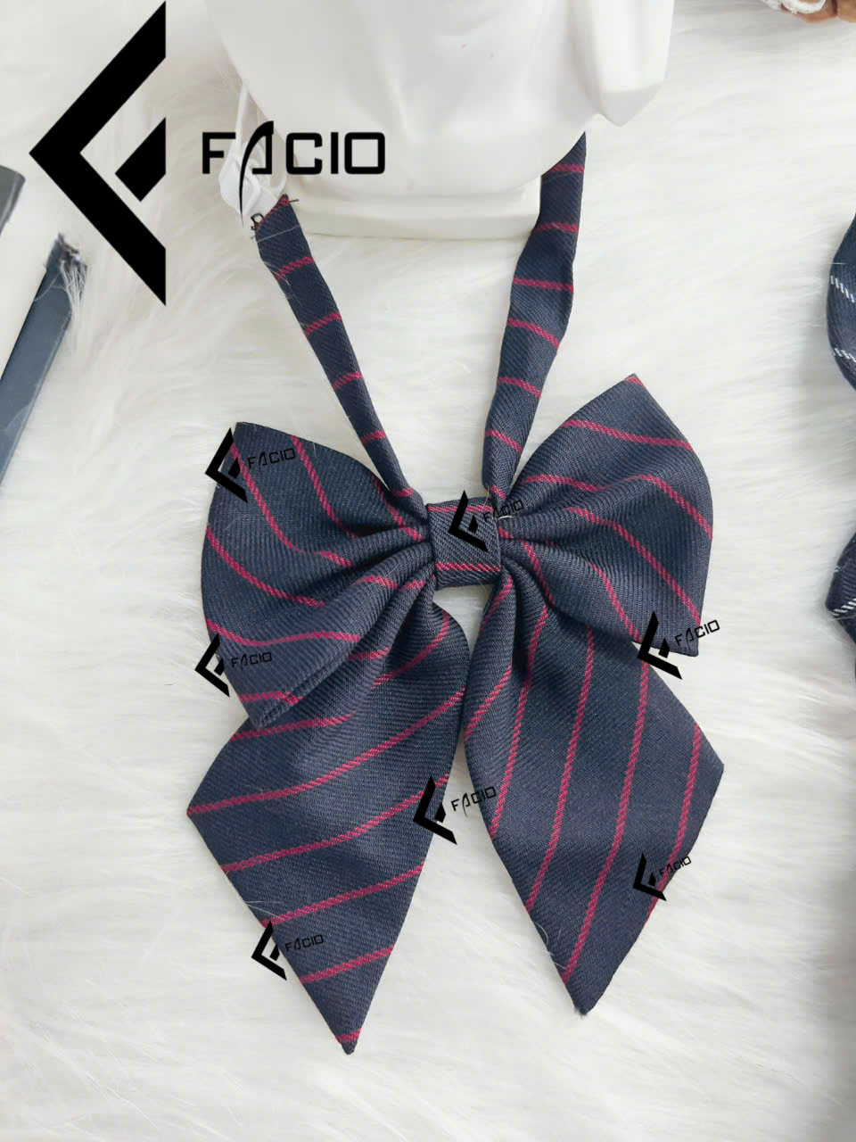 Nơ bướm nữ vải sẹc poly sọc Facio Shop X018 thiết kế bản lớn đuôi dài mềm mại, dễ phối áo sơ mi hoặc đồng phục học sinh, công sở.