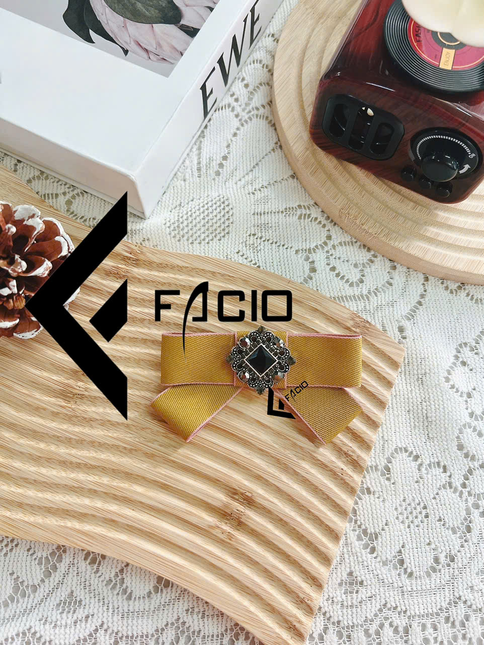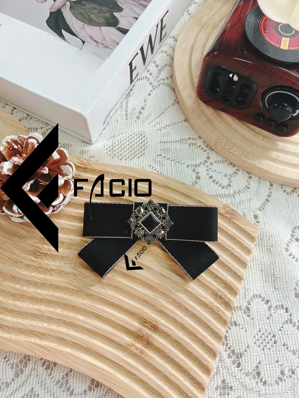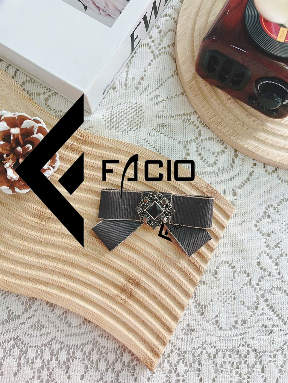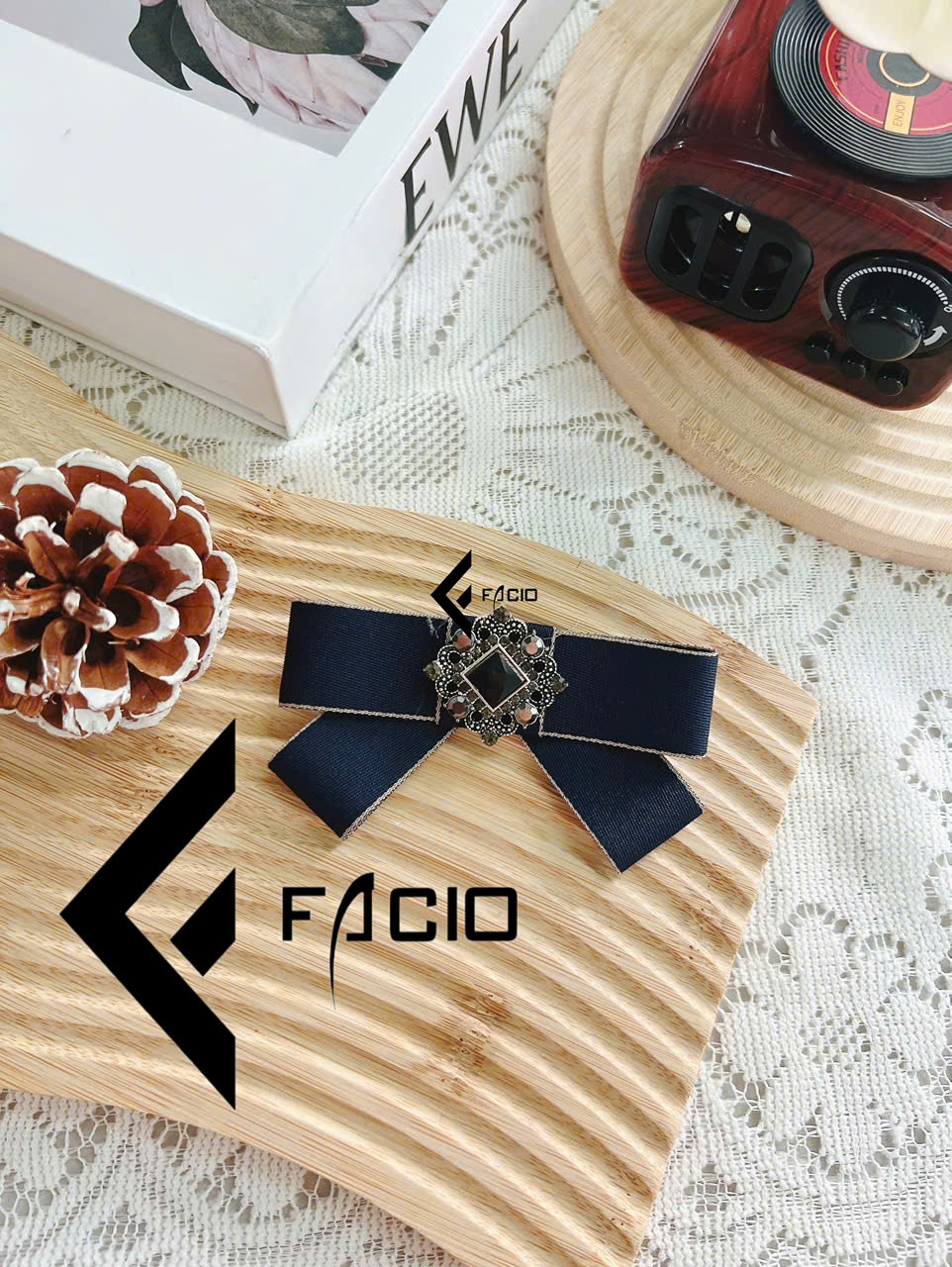 Nơ cài áo poly đính mặt trang trí Facio Shop X24 thiết kế xếp lớp gọn gàng, giữ form đẹp, ghim cài tiện lợi. Phù hợp phối sơ mi, blazer, đồng phục hoặc chụp hình.