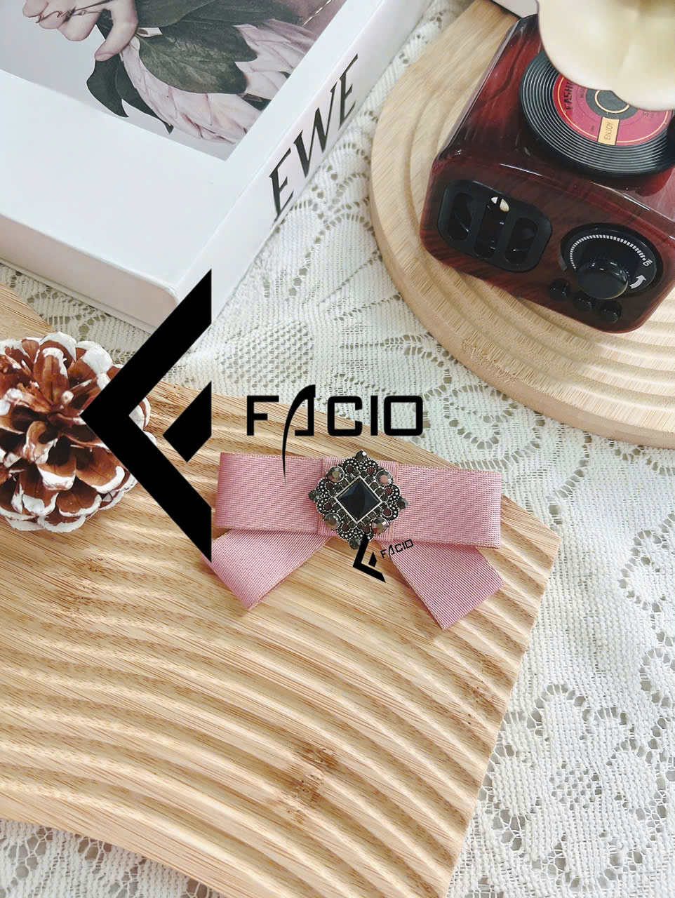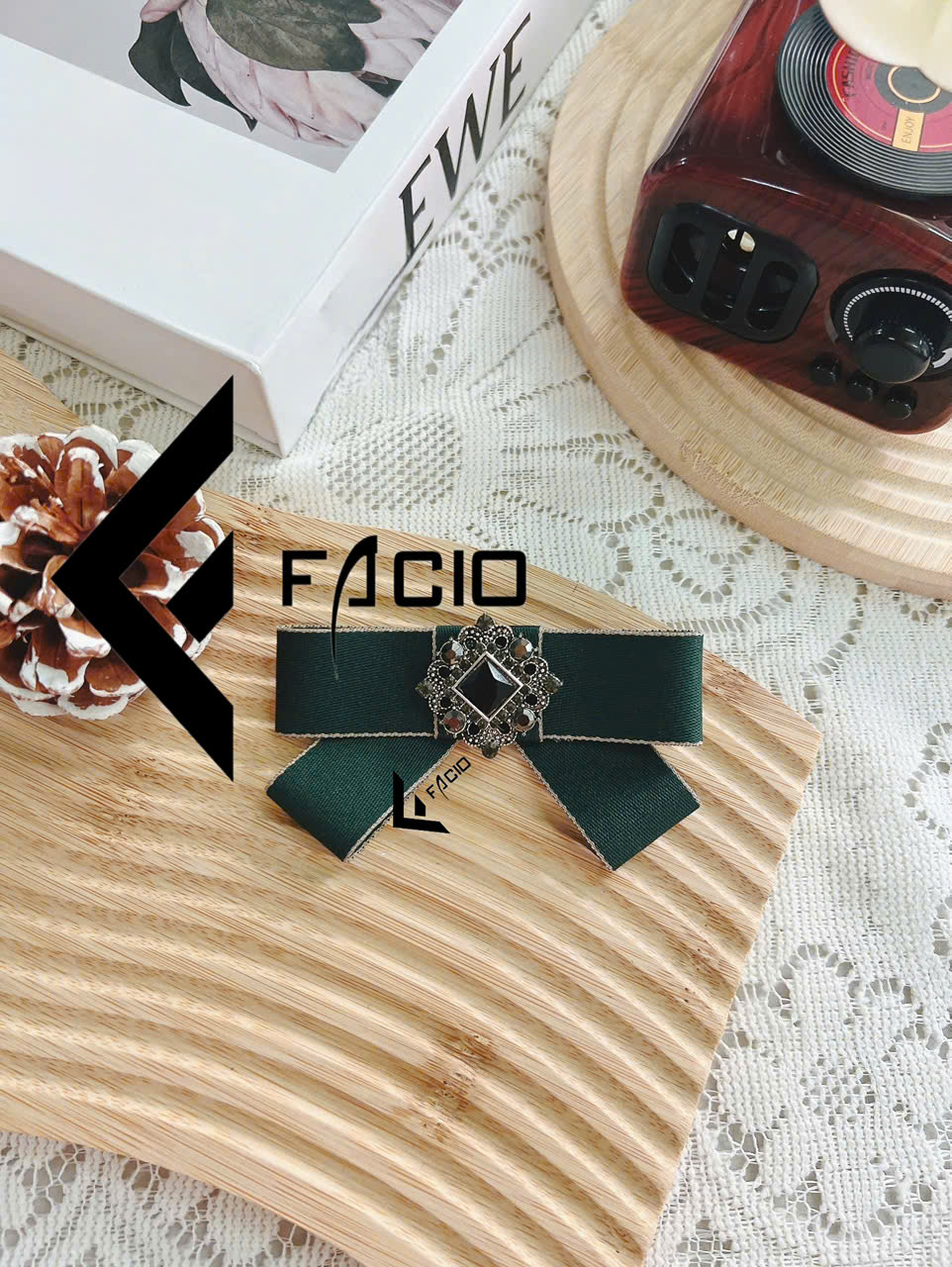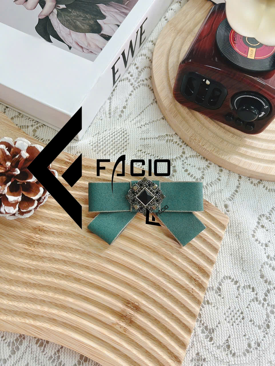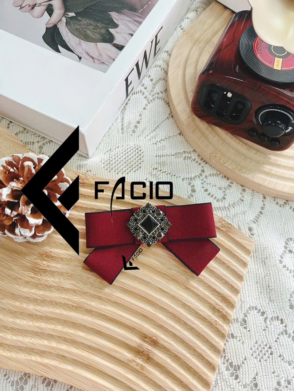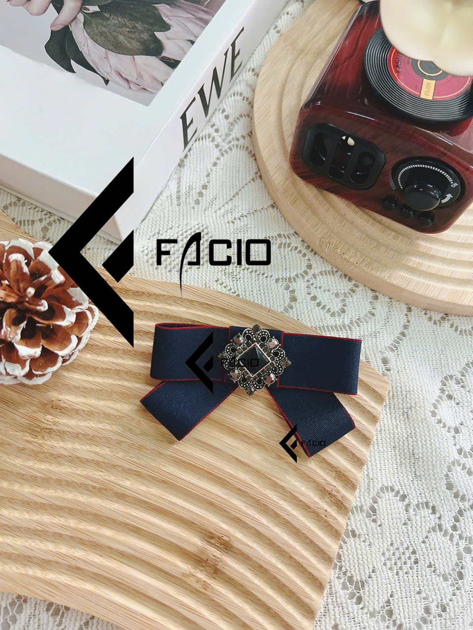 Nơ cài áo poly đính mặt trang trí Facio Shop X24 thiết kế xếp lớp gọn gàng, giữ form đẹp, ghim cài tiện lợi. Phù hợp phối sơ mi, blazer, đồng phục hoặc chụp hình.