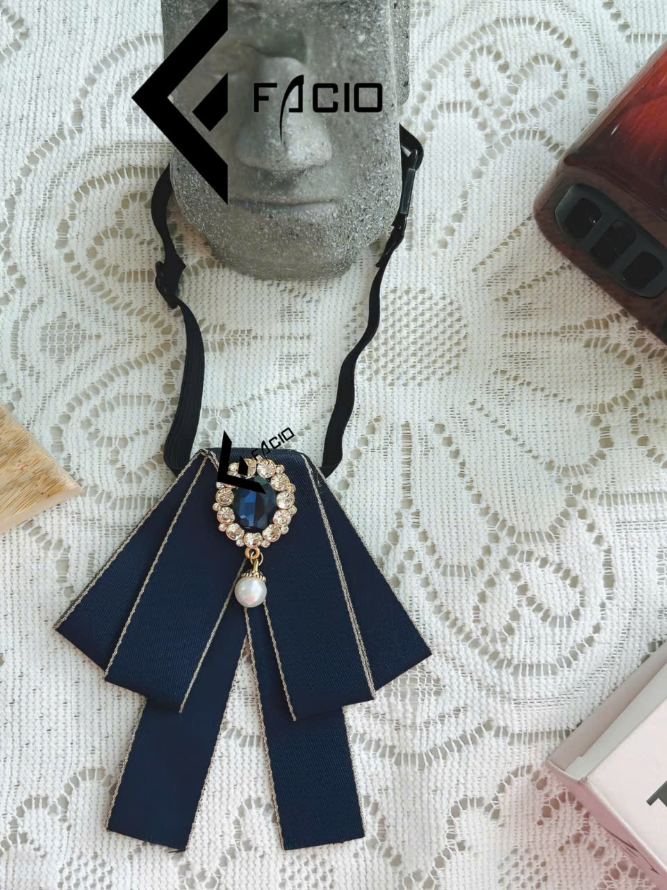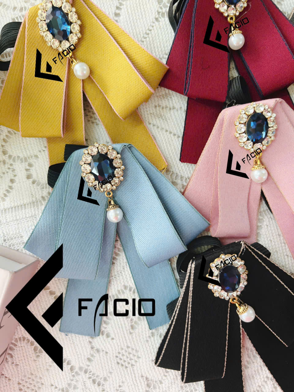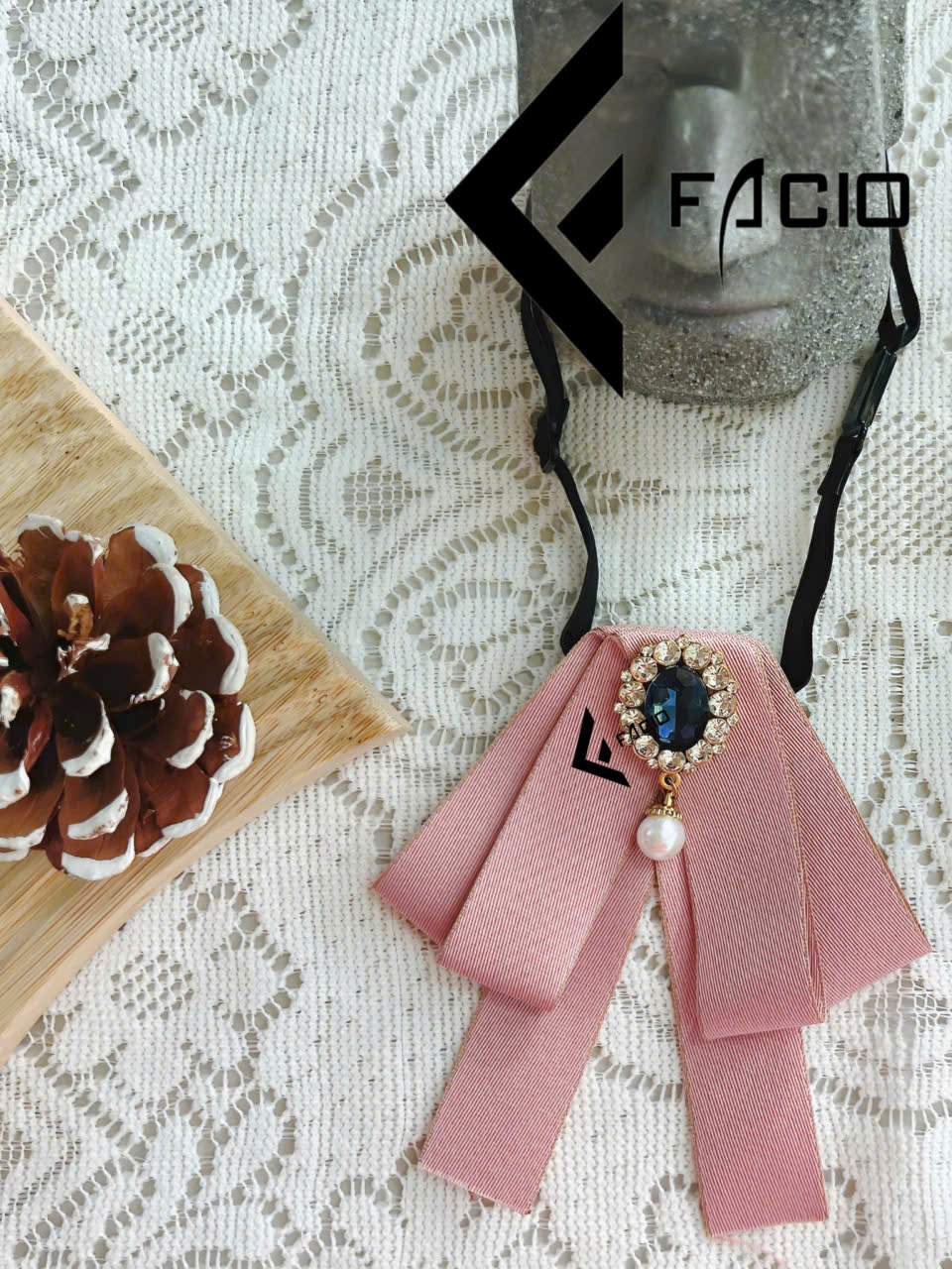 Nơ đeo cổ nữ poly đính phụ kiện Facio Shop X27 thiết kế xếp lớp nổi bật, giữ form đẹp, thắt sẵn tiện lợi. Phù hợp phối sơ mi, đồng phục, đi học hoặc chụp hình.