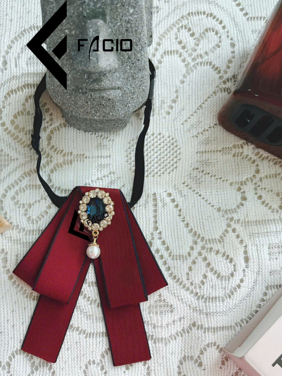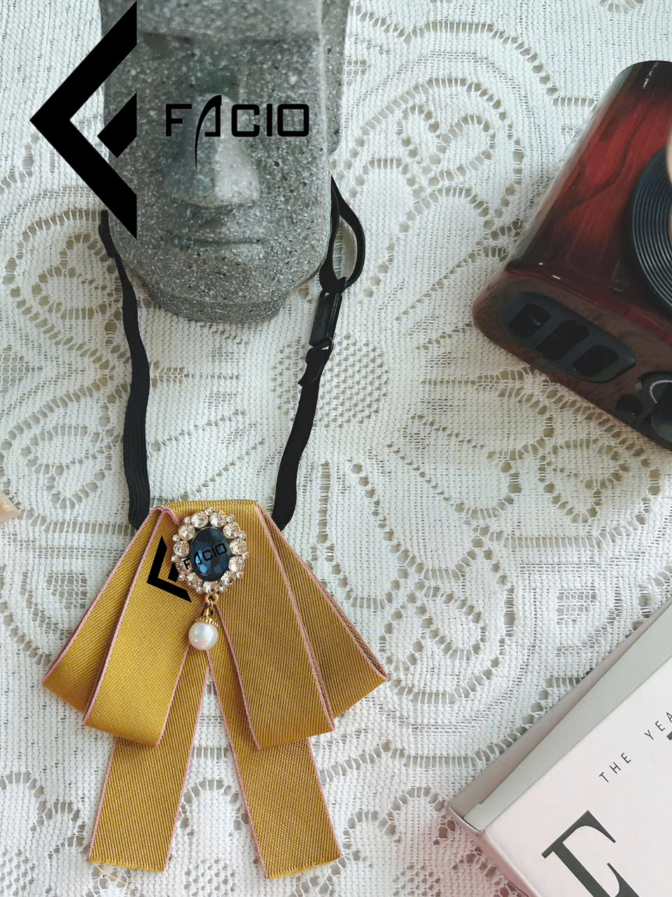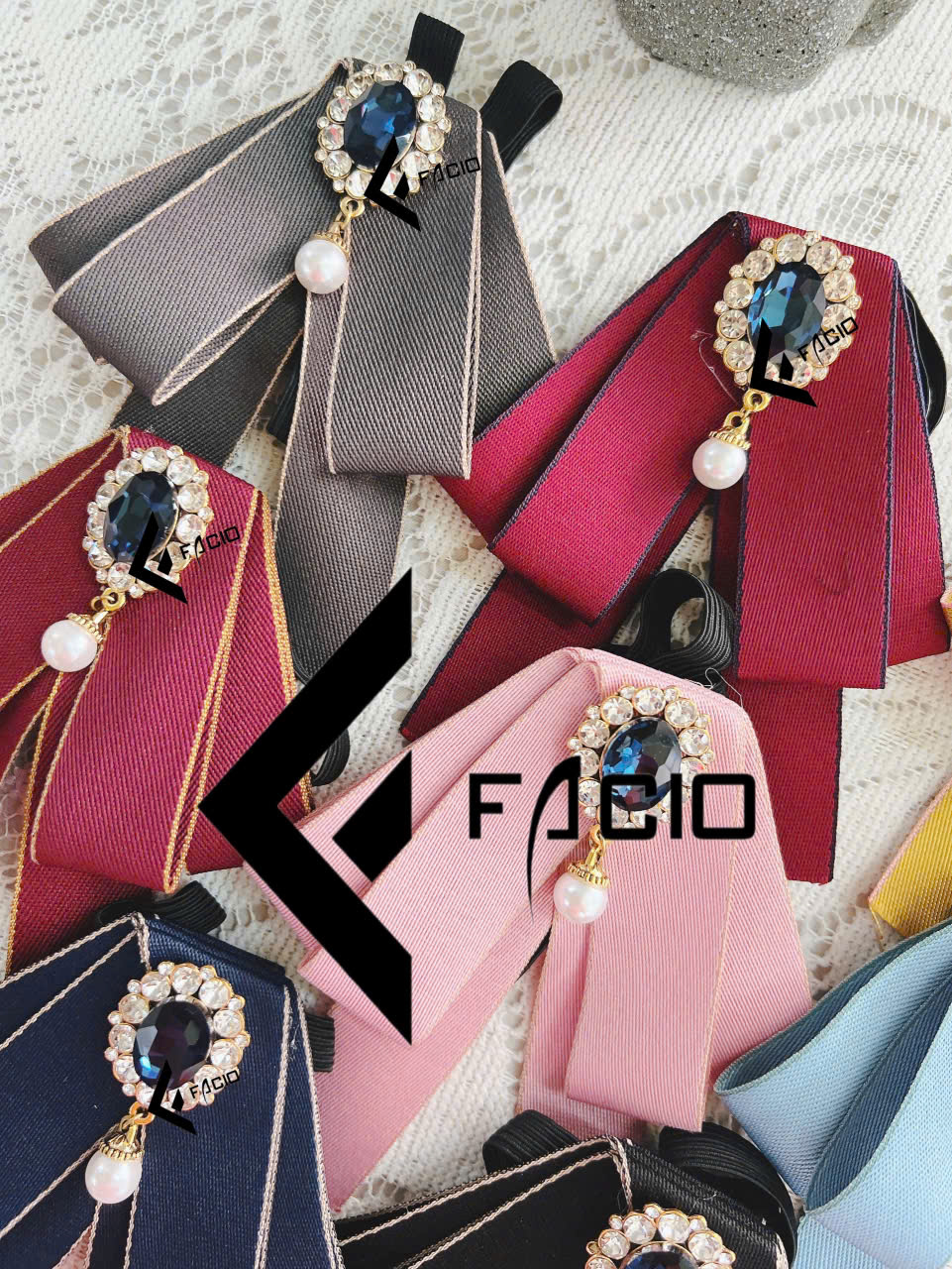 Nơ đeo cổ nữ poly đính phụ kiện Facio Shop X27 thiết kế xếp lớp nổi bật, giữ form đẹp, thắt sẵn tiện lợi. Phù hợp phối sơ mi, đồng phục, đi học hoặc chụp hình.